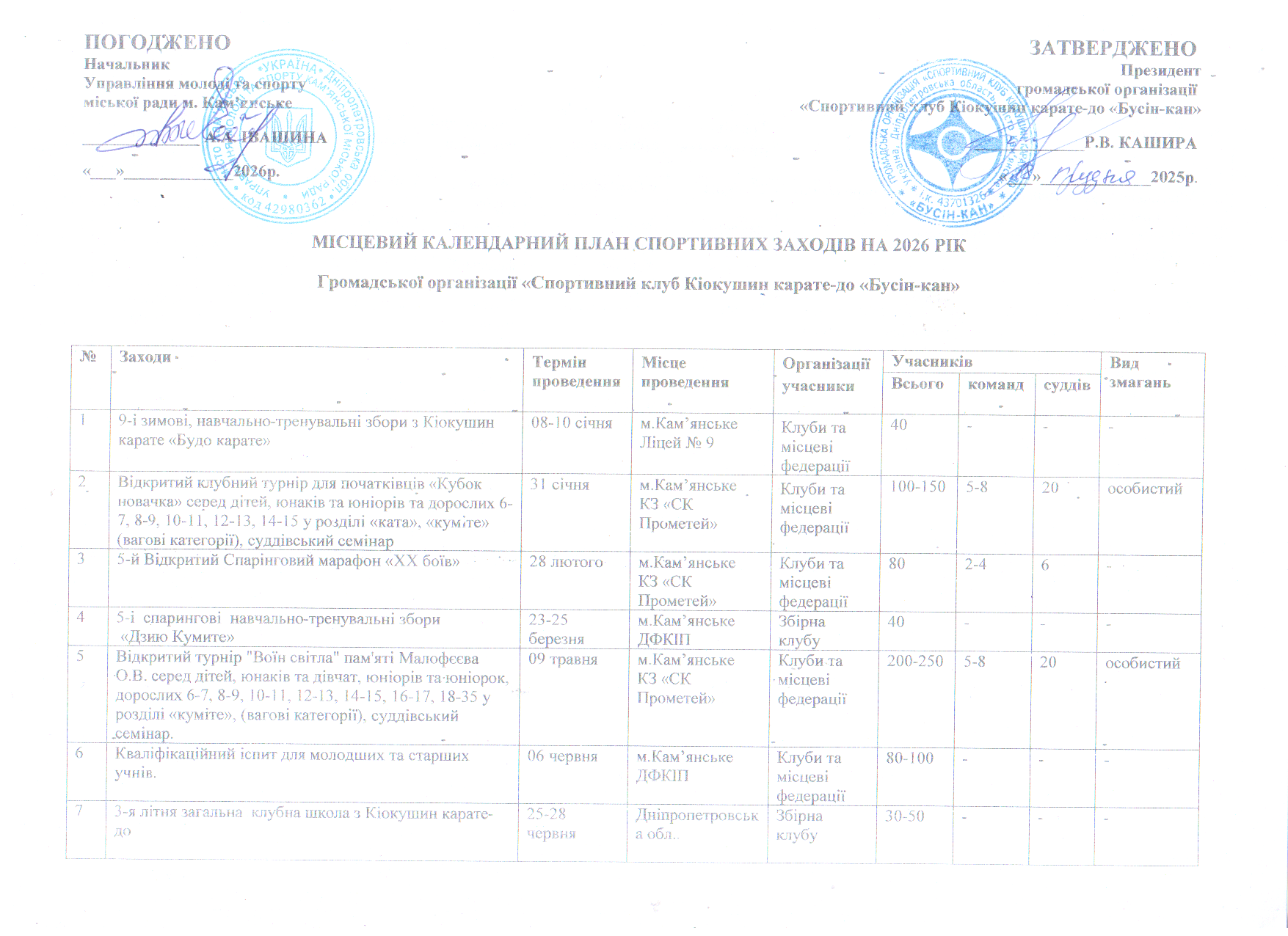 5-й Відкритий клубний турнір для початківців «Кубок новачка» з Кіокушин карате серед дітей, юнаків, юніорів та дорослих 6-7, 8-9, 10-11, 12-13, 14-15 у розділі «ката», «куміте» (вагові категорії), суддівський семінар.